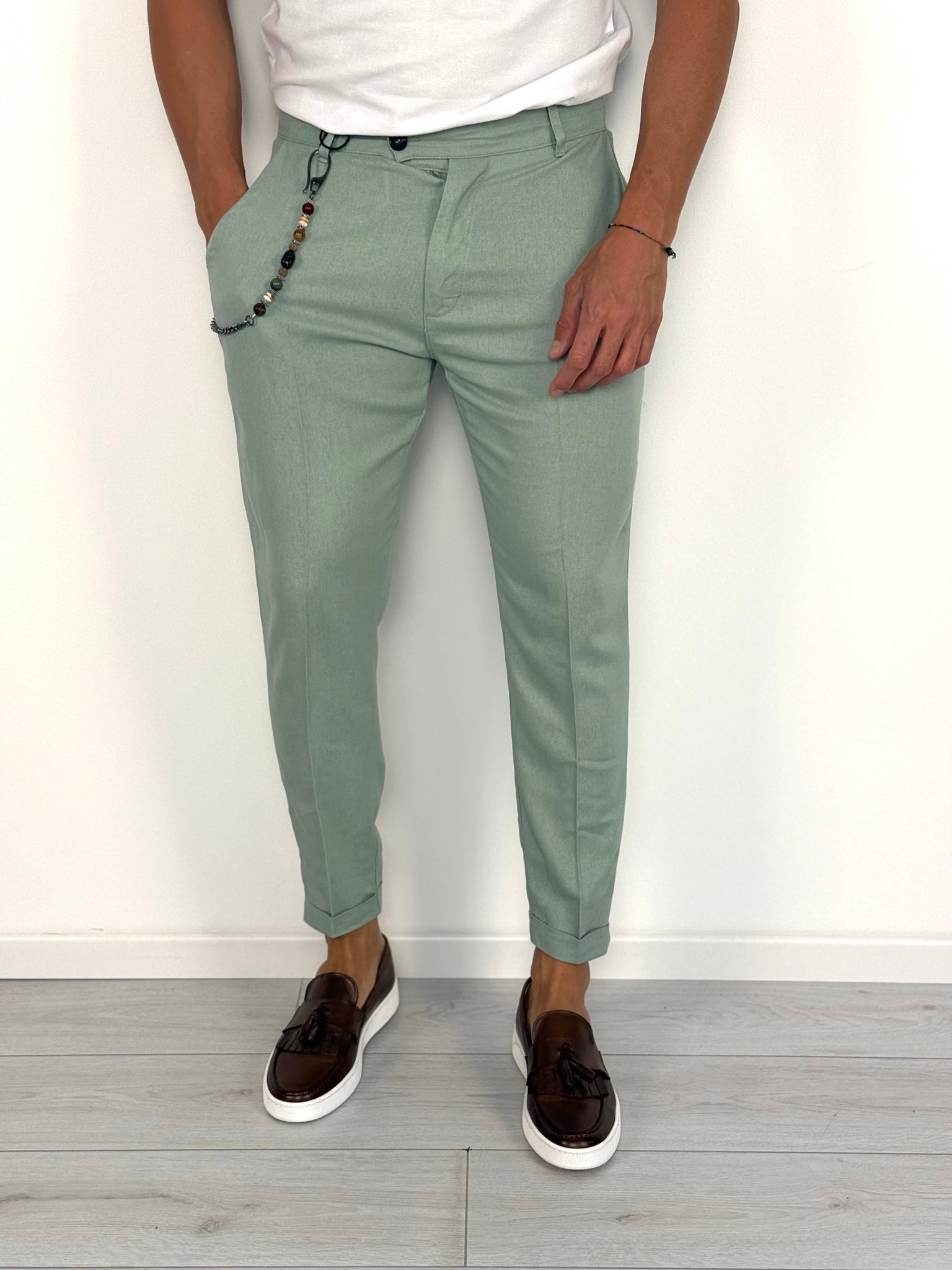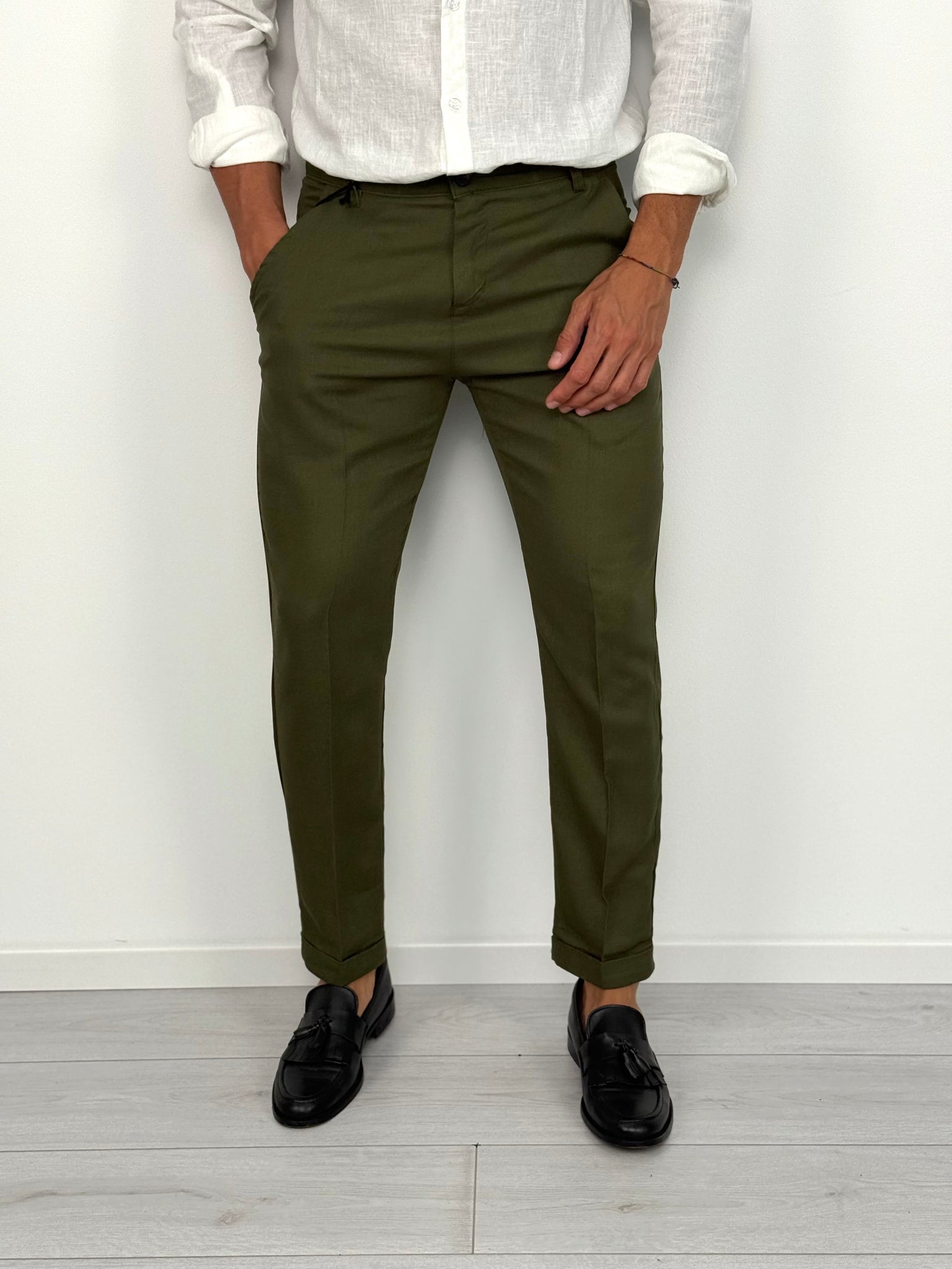 PANTALON CAPRI EN LIN À ROULETTES