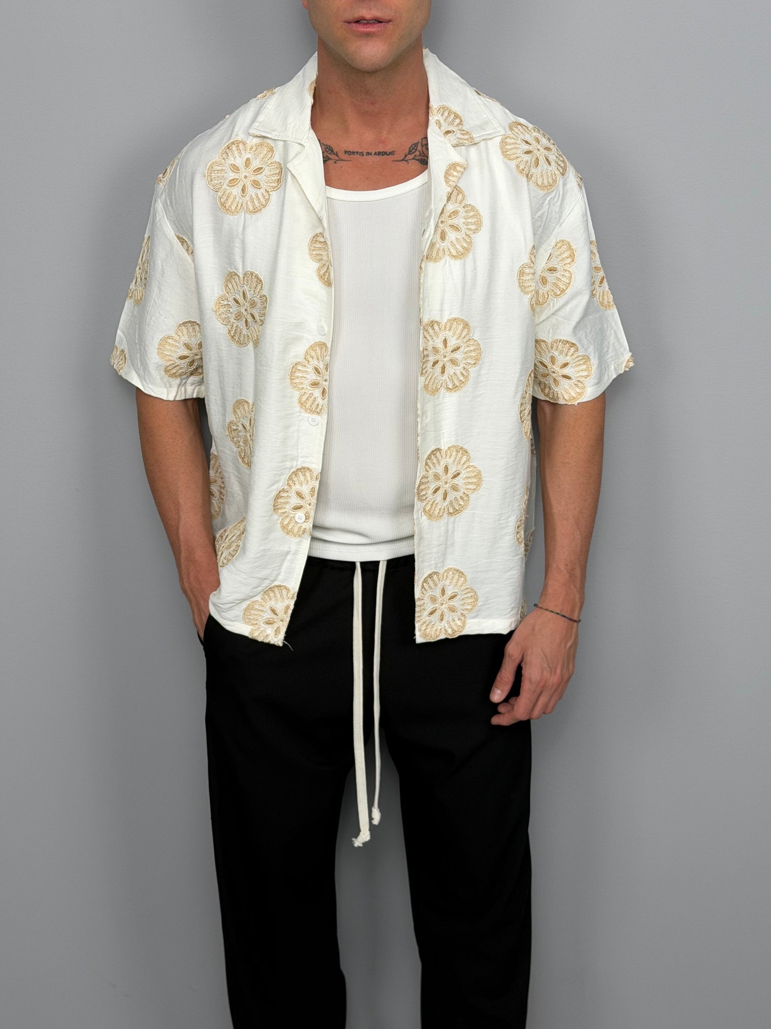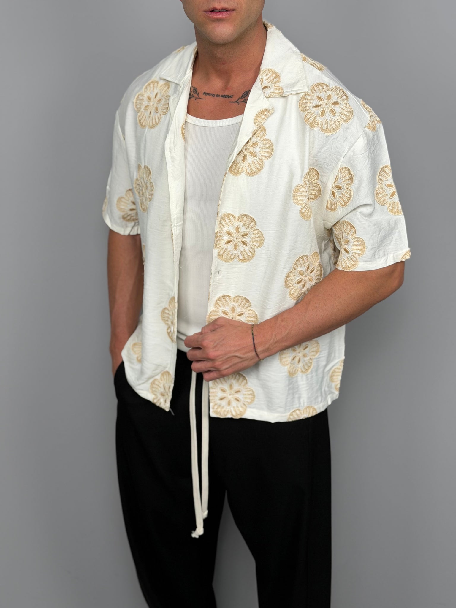 La Camicia Bloom unisce stile contemporaneo e spirito estivo grazie alla sua stampa floreale dal design elegante e ricercato. Un capo pensato per chi desidera distinguersi con un look fresco, moderno e di forte personalità.