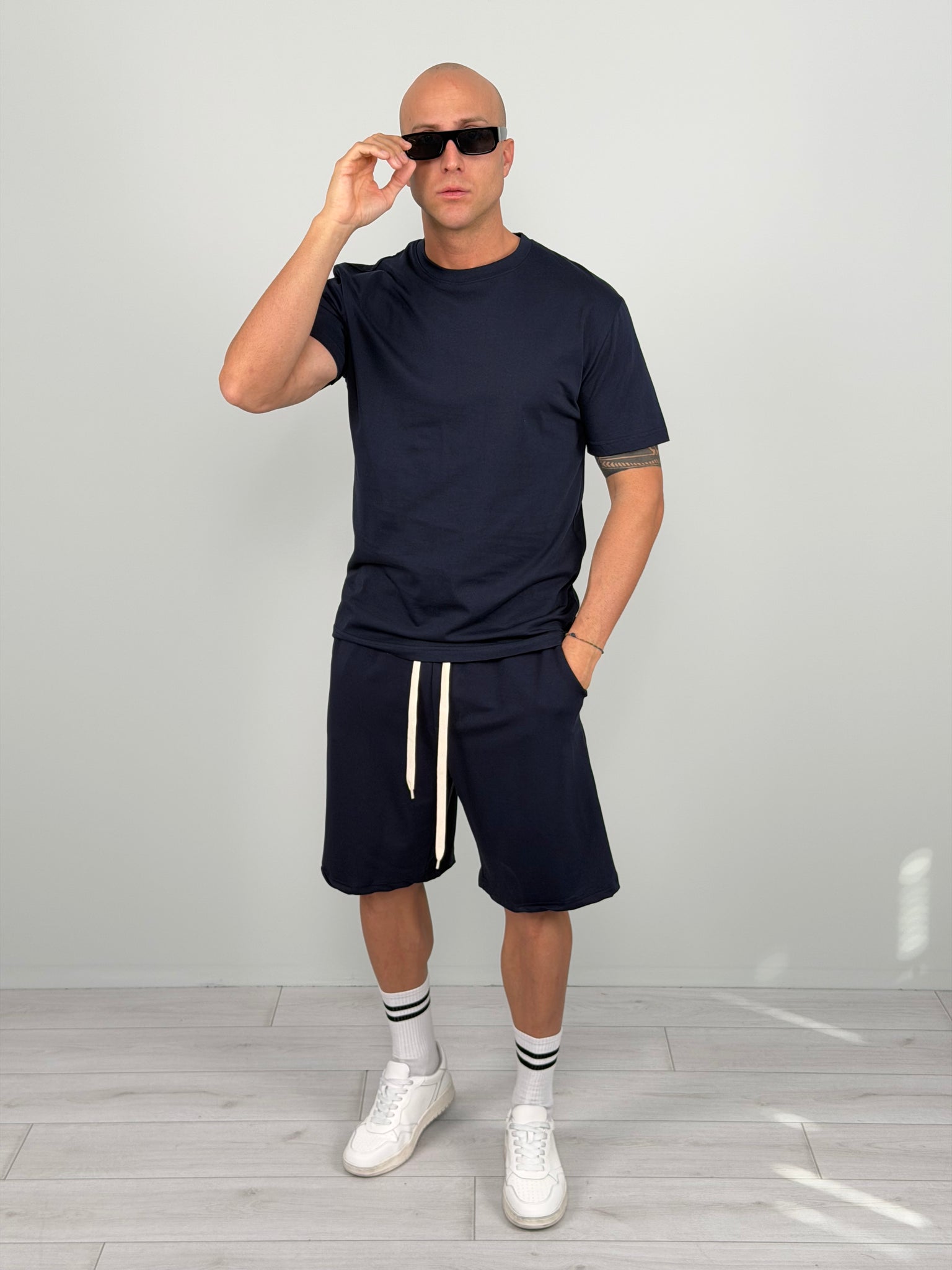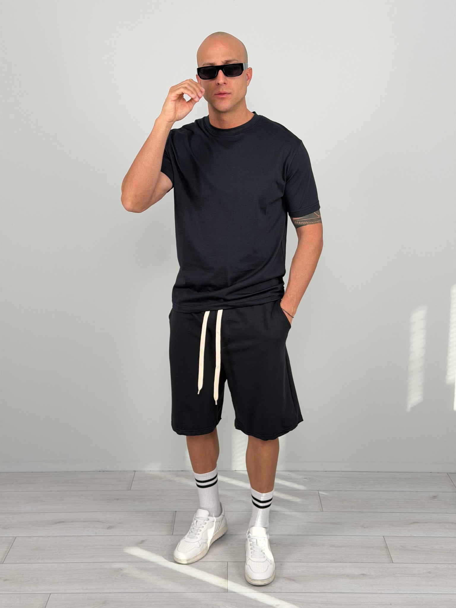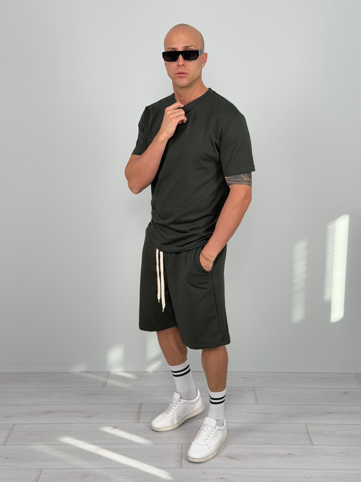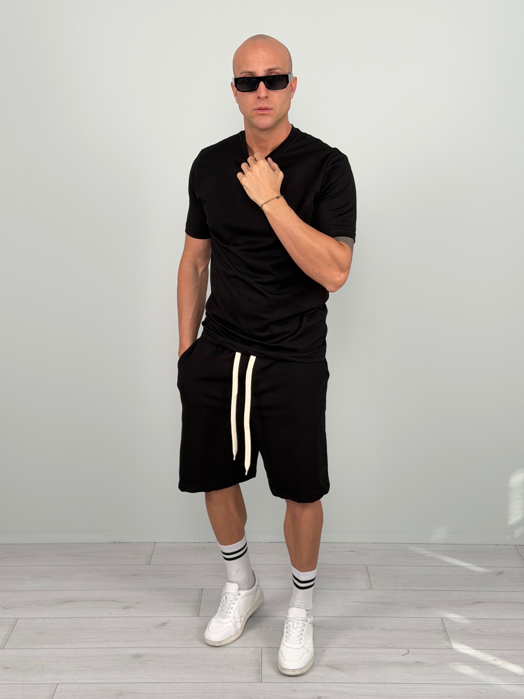 Coordinato dallo stile essenziale e contemporaneo, pensato per chi cerca comfort e carattere in un unico look. Composto da t-shirt e bermuda abbinato, è la scelta perfetta per outfit urbani, dinamici e sempre curati.